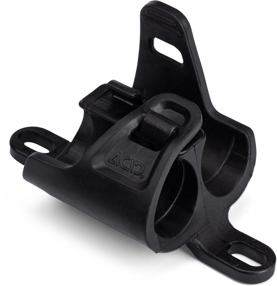 The ACID Frame Mount for the HUSK multi-tool bolts to the bottle cage mounts on your bike frame. The HUSK's metal tubes simply insert on the right- and left-hand sides and it's all fixed into place rattle-free using the included rubber strap. Read more