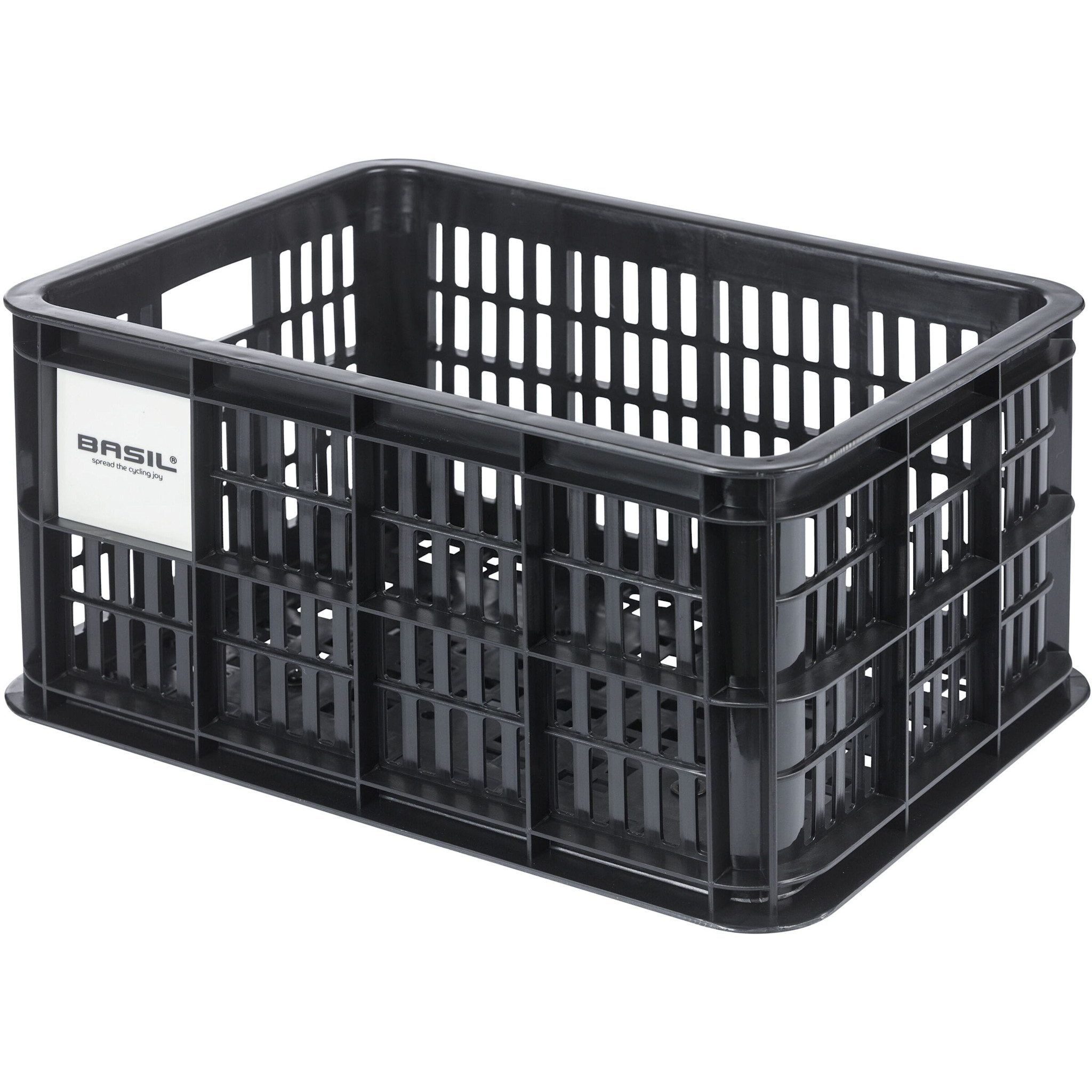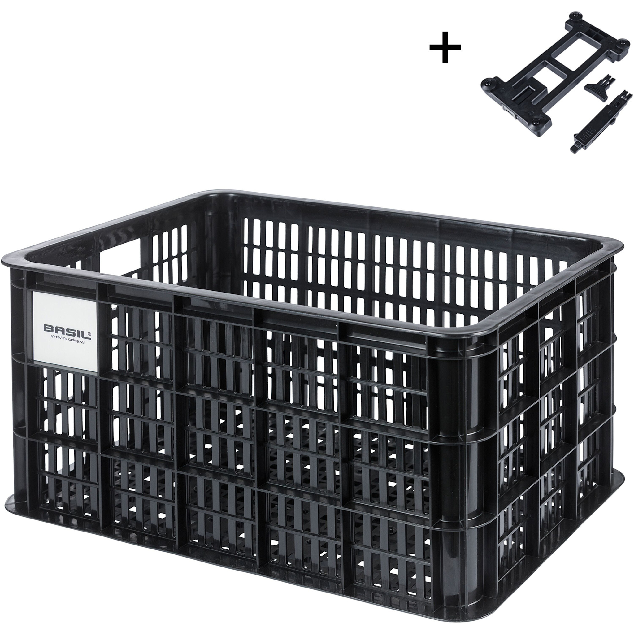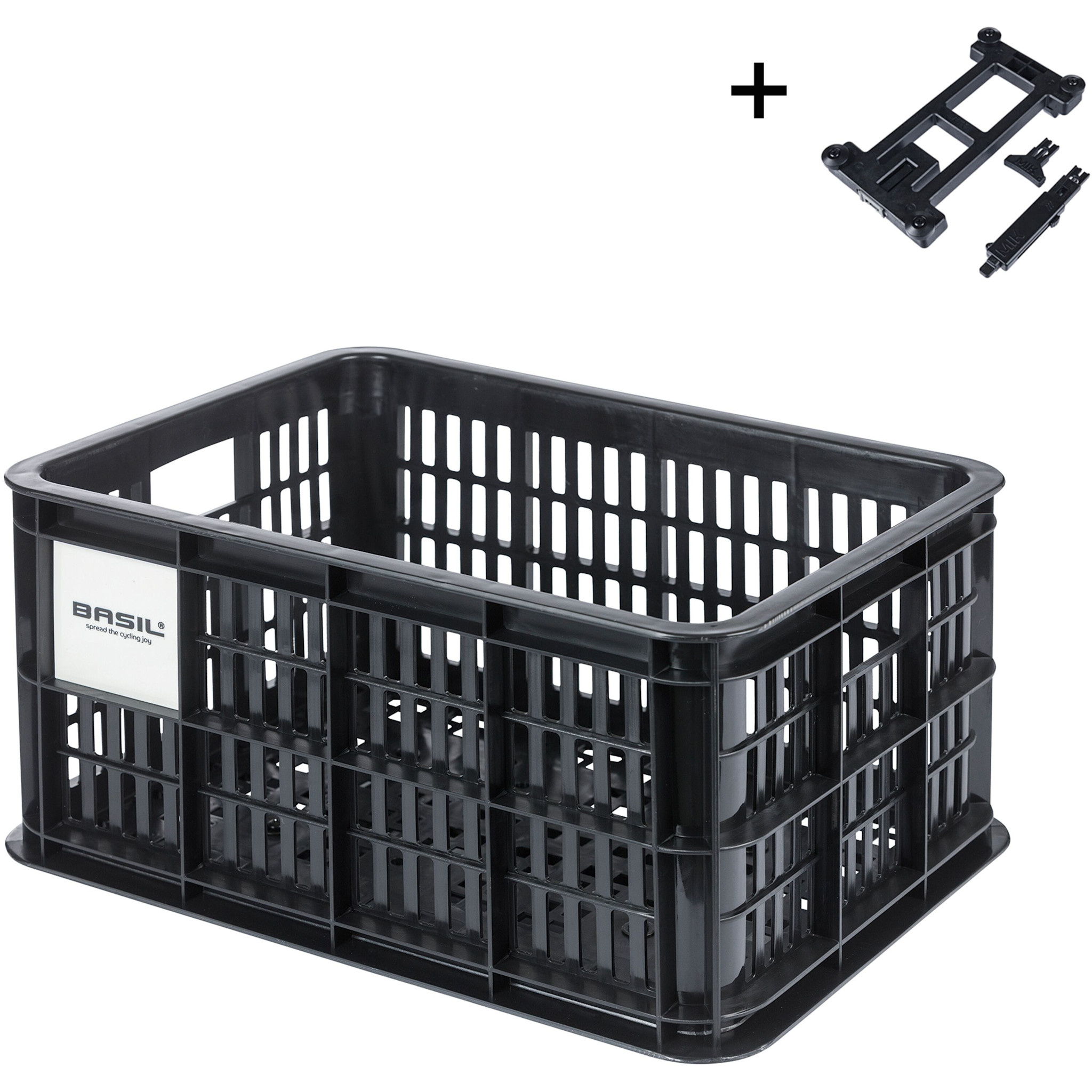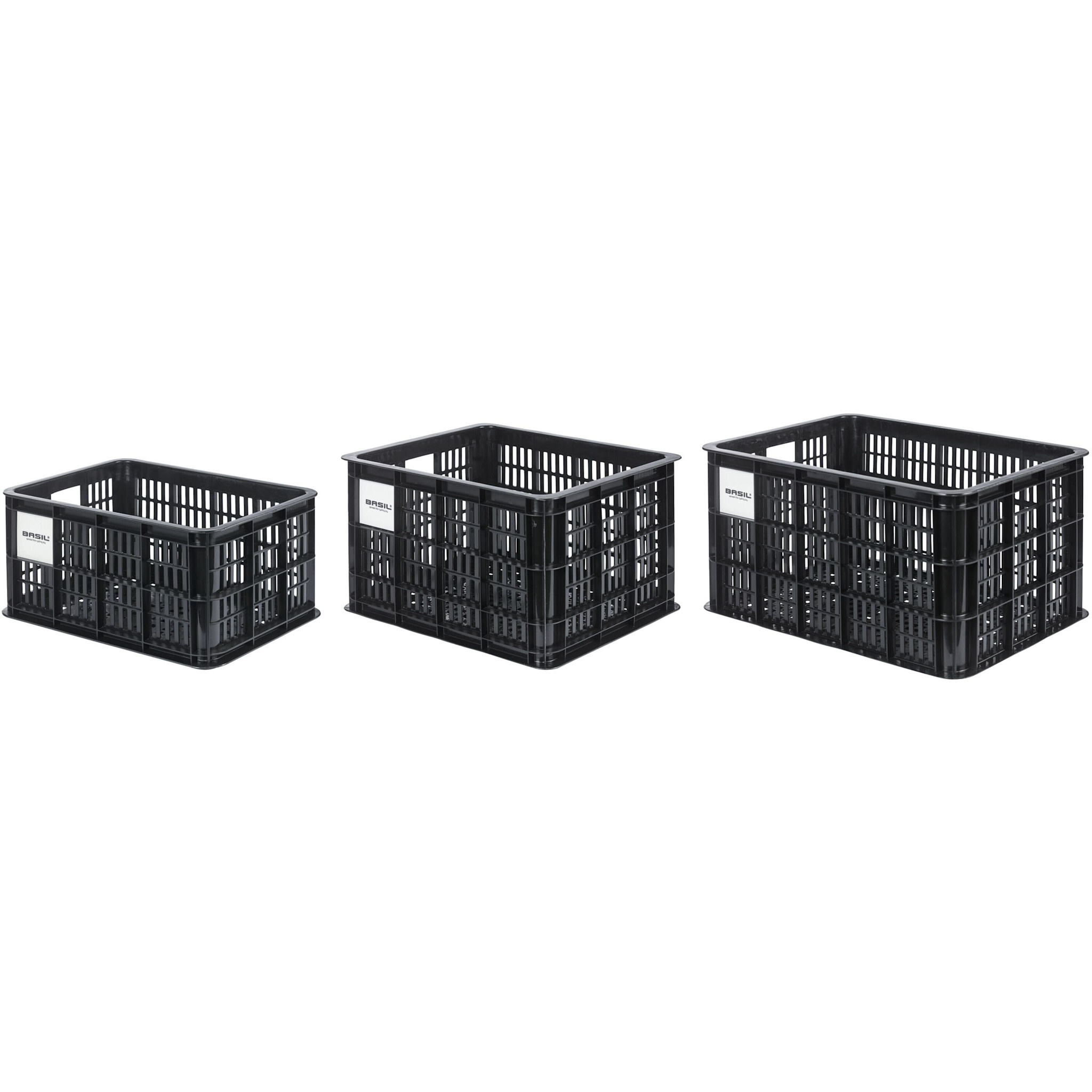 Basil bicycle crate MIK S - small - 17.5 litres - black . The Basil bicycle size S crate is a black bicycle crate for women's, men's, or children's bicycles. The crate is made of sustainable material, has a capacity of 17. Read more