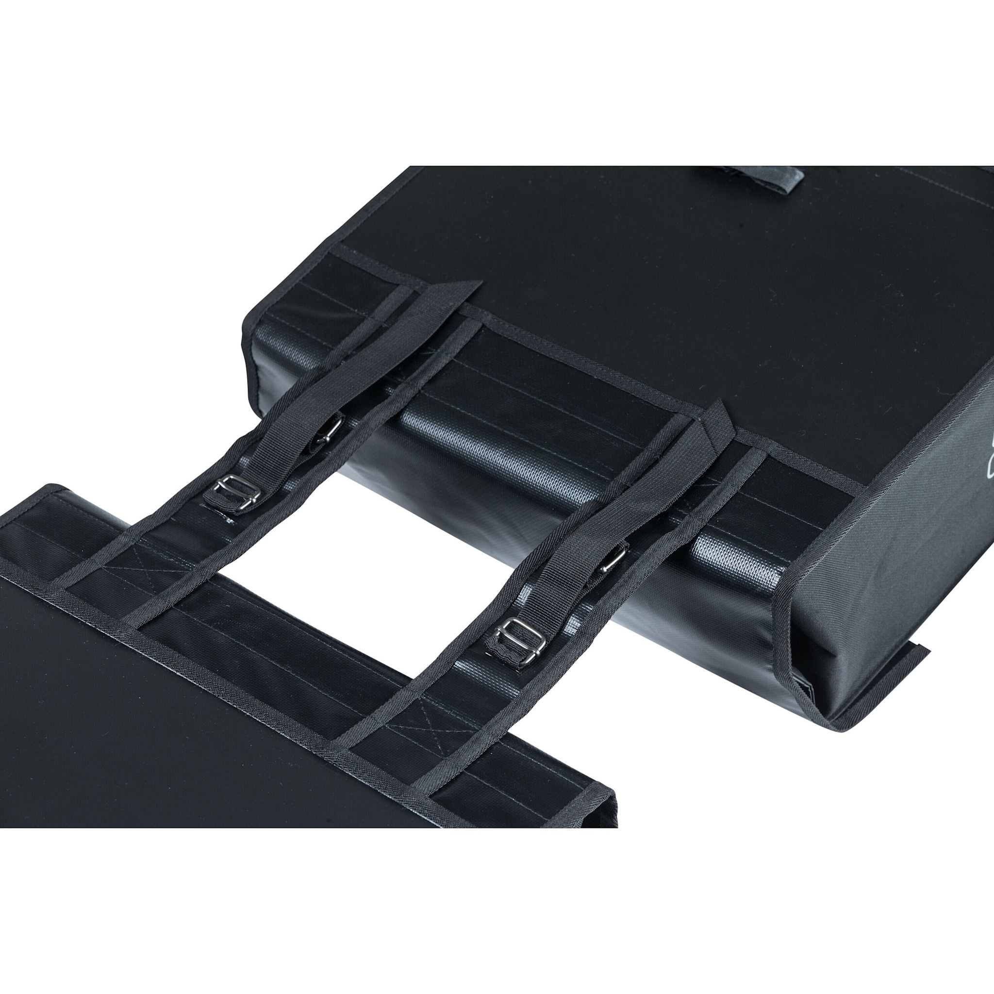 The Double Bag has an impressive capacity of 53 litres. The bag can be adapted to its load due to the adjustable buckles. A lot of groceries, sports clothes or personal belongings can be transported. When the bag is empty it can be made smaller and compact thanks to the flexible sides. This way parking your bike in a crowded bikepark is a lot easier.
