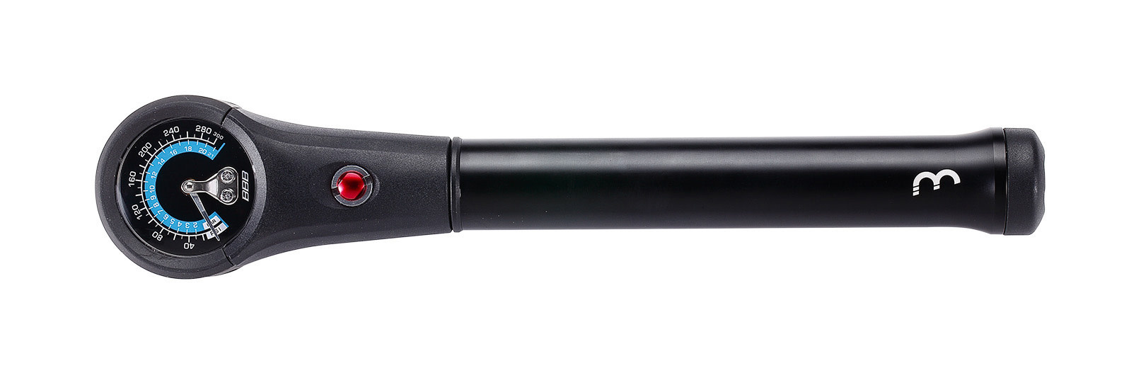 - Special high pressure and low pressure function, which makes this pump usable for both tyres as well as shocks and forks.
