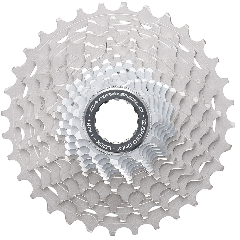 When researching other 12-speed equivalents on the market, they found an incredible amount of flex due to the single ring set up of the cassette. Campagnolo cassettes are fixed to a spline to offering greater rigidity and smoother shifting. The cassette's last two triplets are CNC'd out of one piece of hardened steel for optimum stiffness Alloy spacers have been used for improved durability and weight saving.