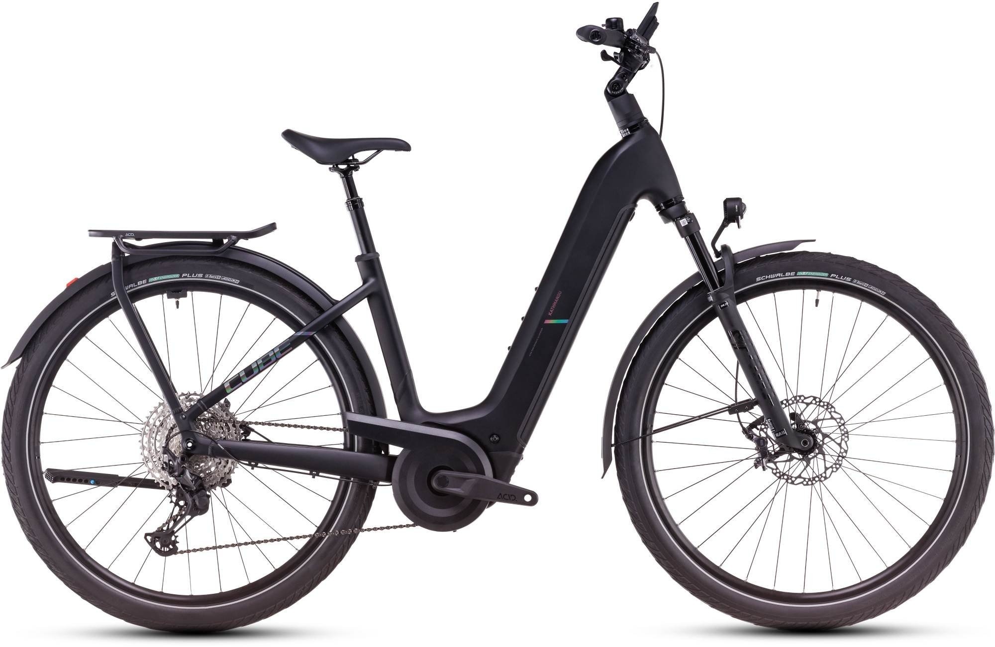 - Description frame: You'll instantly recognise CUBE's Kathmandu Hybrid as a piece of timelessly elegant bicycle design, but it's stuffed full of innovation and clever touches. The neatly housed Bosch CX drive and 800 Wh PowerTube battery are just the start. Efficient Comfort Geometry is designed around a 100mm travel suspension fork, for better control even when the going gets rough. Integrated cables complement the frame's clean lines and help reduce the need for maintenance, while a UDH dropout is tough, versatile and future-proof. And, of course, there's an integrated chainguard mount and our tough, sturdy and exceptionally neat Integrated Carrier 3.0, so you can carry everything you need for your adventures.