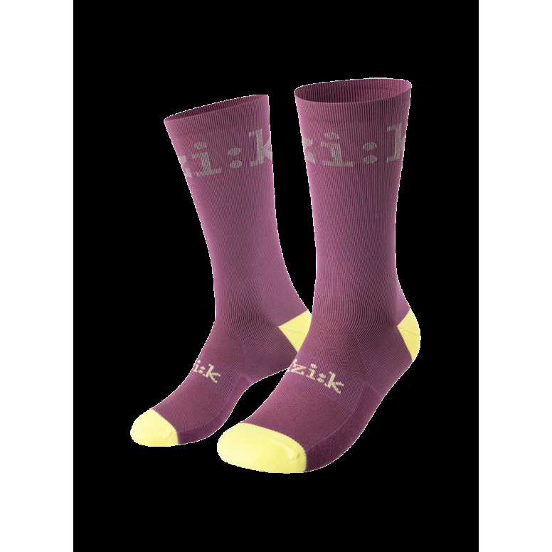 Colorful, bold cycling socks designed to keep feet dry and spinning while repping team fizik in comfort and style.