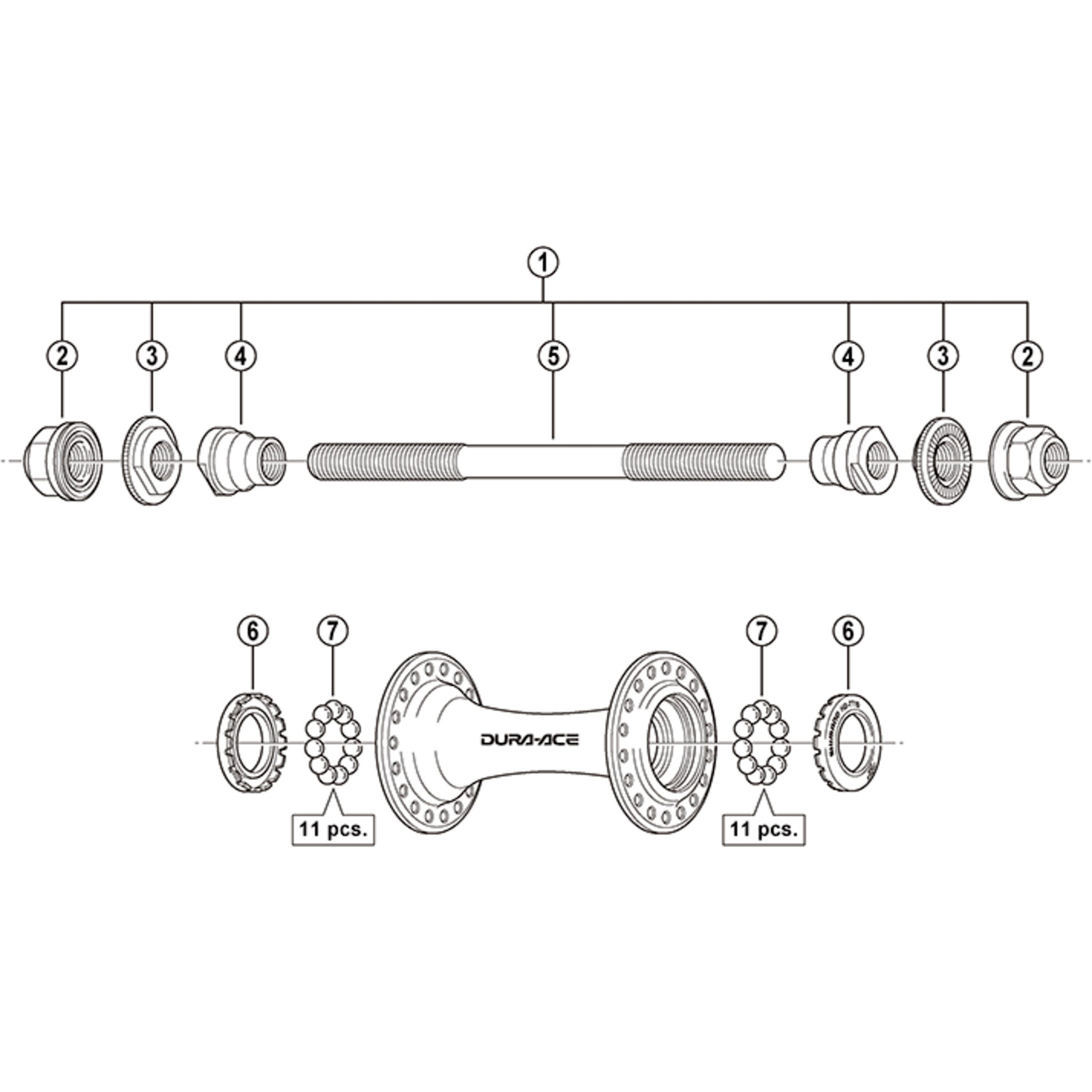 HB-7710 front Track complete axle 142 mm is product number 1 in the attached image. Genuine Shimano replacement part. Read more