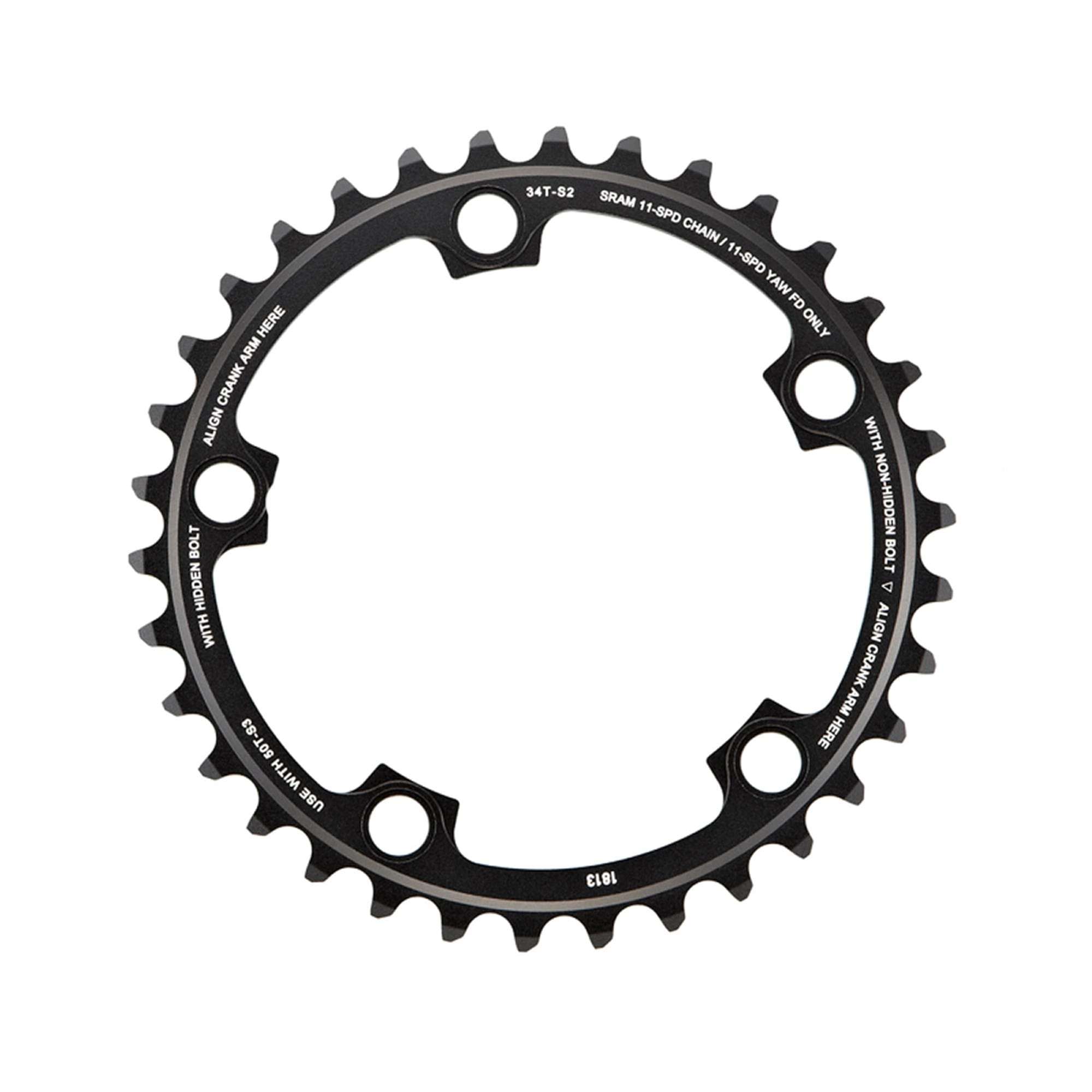 SRAM CHAIN RING ROAD RED22/FORCE22/RIVAL22 X-GLIDE R 34T YAW 11 SPEED S2 110 ALUM 3MM BLAST BLACK (50-34): BLACK 11SPD 34T