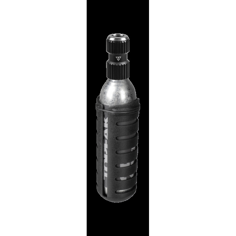 An extremely compact, lightweight and easy-to-use CO2 inflator. Precision CNC machined aluminum inflator fits Presta and Schrader valves and works with threaded 16g or 25g cartridges. Simply screw the cartridge in tight and then screw the head onto the valve, unscrew the cartridge to release all the gas from the CO2 cartridge in seconds. Included CO2 Cartridge Shell protects your hands from cold cartridges during inflation.