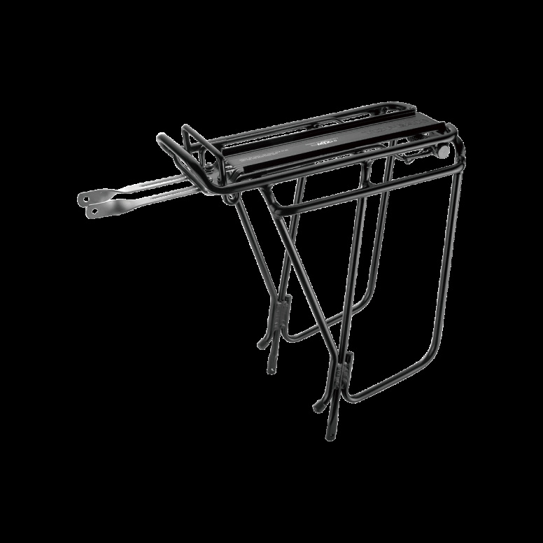 Our toughest tubular aluminum rear rack designed for heavy-duty, long distance touring. Integrated side bar provides a lower pannier attachment point-allowing more space for cargo on the rack top. The MTX QuickTrack® plate is compatible with any Topeak MTX TrunkBag, MTX rear basket, and MTX 2.0 TrunkBag. An integrated spring clip is convenient for securing lighter weight cargo for spring clip version.