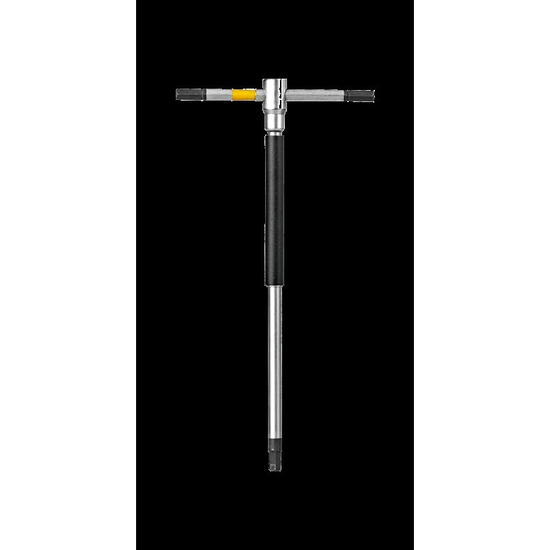 Pro quality, hardened steel hex wrenches for better wear resistance and longer tool life. Hex heads on each end of the handle provide additional positions while a speed sleeve adds speed with efficiency and the sliding T-handle imparts additional leverage. Included tool holder perfectly positions each each wrench for easy access and storage