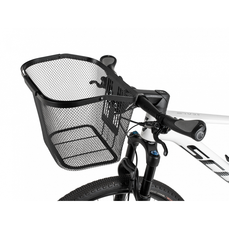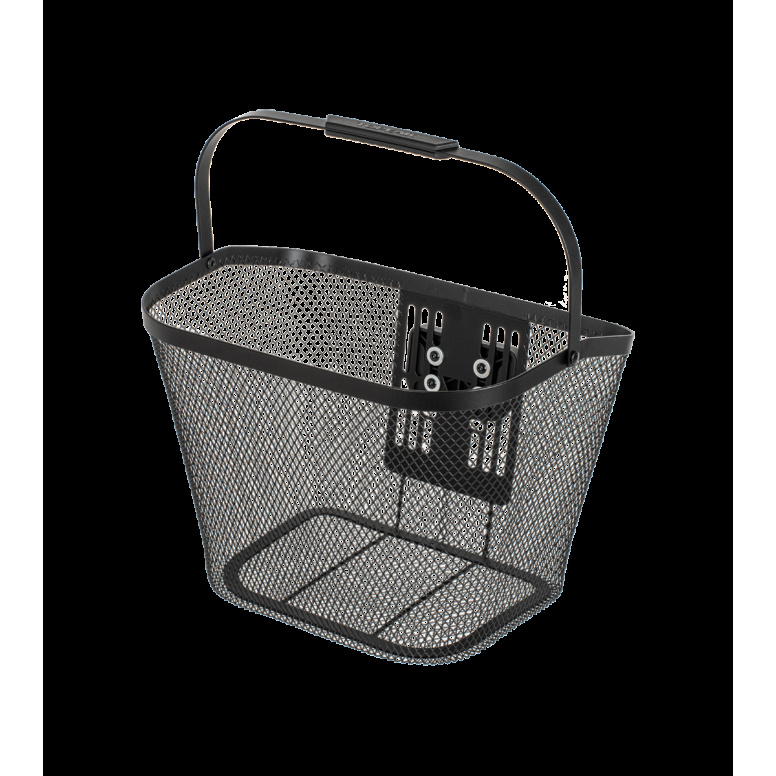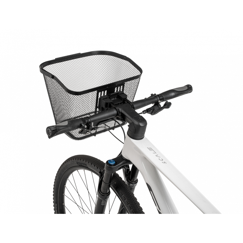 Metal mesh basket, paired with the all-new Fixer 9 mount. The new Fixer 9, with an adjustable width design, is suitable for regular and e-bike handlebars/ stems, features enhanced rear support, and comes with a quick-release system for easy detachment.