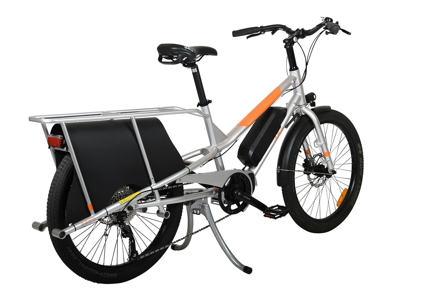 The two 24″ wheels equipped with Maxxis 2.5 tires and the Chromoly steel frame of the Kombi E5 offer excellent grip. The Shimano Alivio hydraulic brakes and the Shimano 11-36 Altus 9-speed derailleur give the Kombi E5 a ride quality suited to the purpose and provide a feeling of security, even when the bike is loaded.